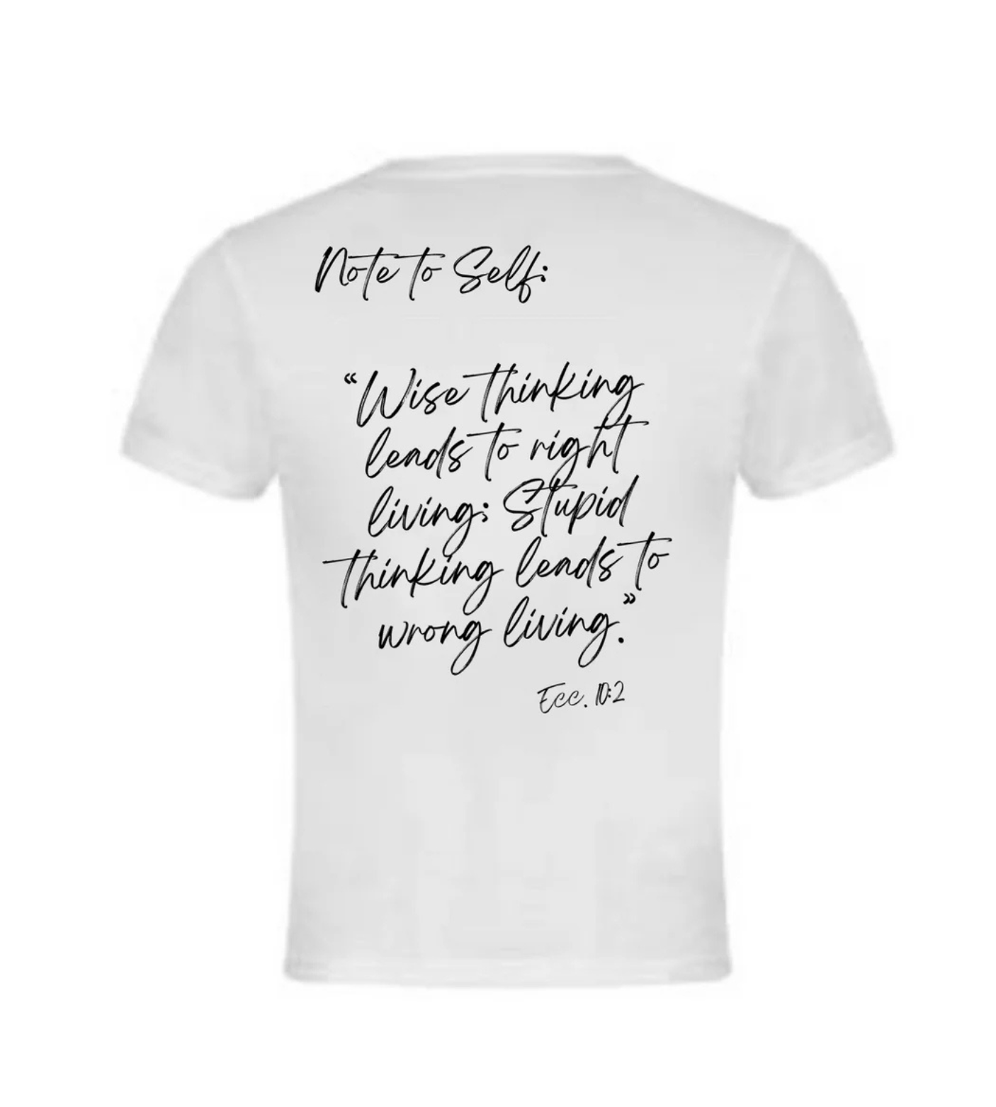 The Note 2 Self shirt features the SLC logo prominently across the front, serving as a constant reminder of your values and principles. On the back, a powerful verse from Ecclesiastes 10:2 in the MSG Bible version: