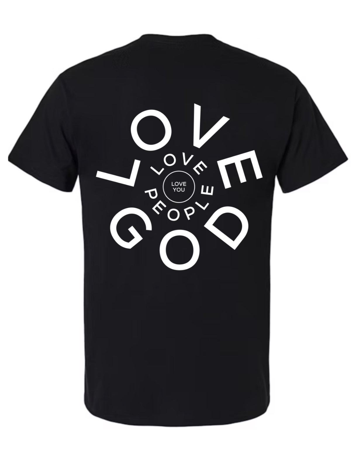 Show off your faith with our Triple Tee: Love God! 😇 This comfortable, short-sleeved shirt features a bold, circular design with "LOVE GOD" emblazoned in large letters, repeated three times for extra emphasis. Perfect for anyone who wants to express their love and devotion to God.
